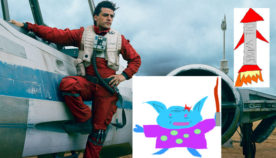 Above: Ace pilot Poe Dameron (Oscar Isaac) prepares for battle along with the rest of his mighty fleet. As always, his sidekick Girl Yoda is ready to fly off and kick some Sith butt. Abrams’ special effects team put in over 300 hours into designing Girl Yoda’s dress and bow, so viewers new and old alike could clearly tell that she was just like the original Yoda, except also a girl.
